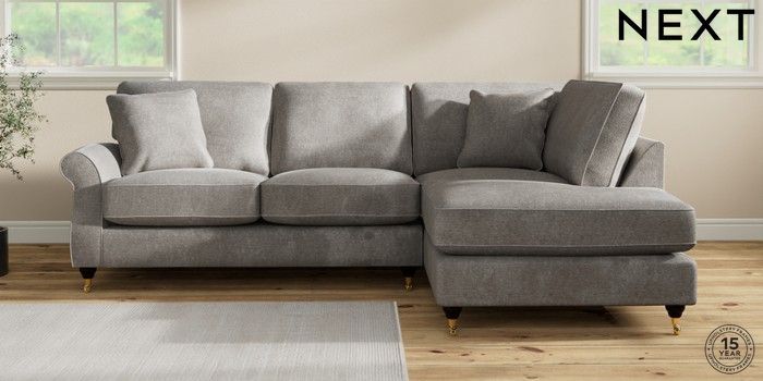 7.2.10 Ashford Relaxed Sit Medium Corner Chaise - Right Hand Plush Chenille Light Grey Castor - Dark | Made Click here to use our website with more accessibility support, for example screen readers