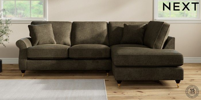 7.2.10 Ashford Relaxed Sit Medium Corner Chaise - Right Hand Plush Chenille Moss Green Castor - Dark | Made Click here to use our website with more accessibility support, for example screen readers