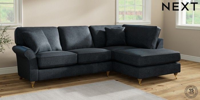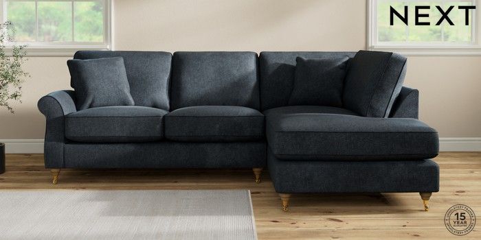 7.2.10 Ashford Relaxed Sit Medium Corner Chaise - Right Hand Plush Chenille Slate Blue Castor - Light | Made Click here to use our website with more accessibility support, for example screen readers