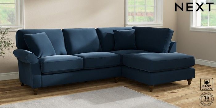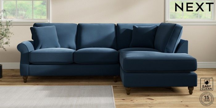 7.2.10 Ashford Relaxed Sit Medium Corner Chaise - Right Hand Plush Velvet Easy Clean Airforce Blue Low Turned - Mid | Made Click here to use our website with more accessibility support, for example screen readers