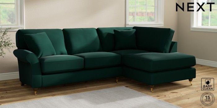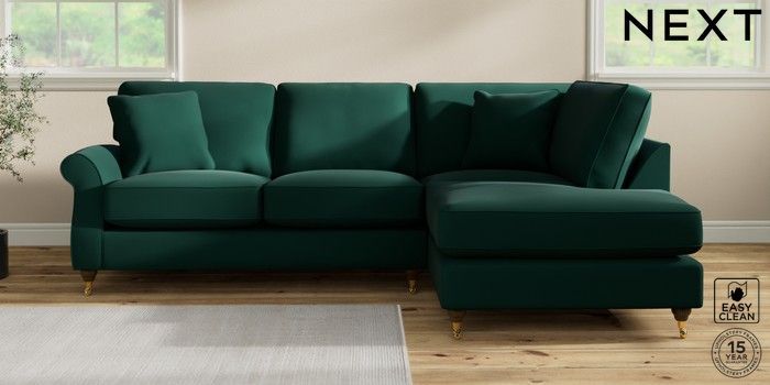7.2.10 Ashford Relaxed Sit Medium Corner Chaise - Right Hand Plush Velvet Easy Clean Bottle Green Castor - Mid | Made Click here to use our website with more accessibility support, for example screen readers