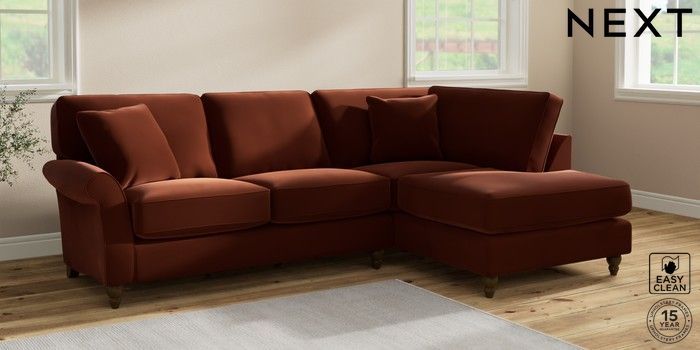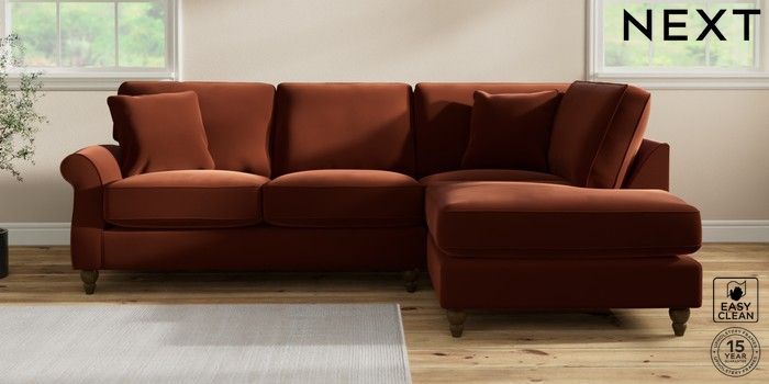 7.2.10 Ashford Relaxed Sit Medium Corner Chaise - Right Hand Plush Velvet Easy Clean Ginger Orange Low Turned - Mid | Made Click here to use our website with more accessibility support, for example screen readers