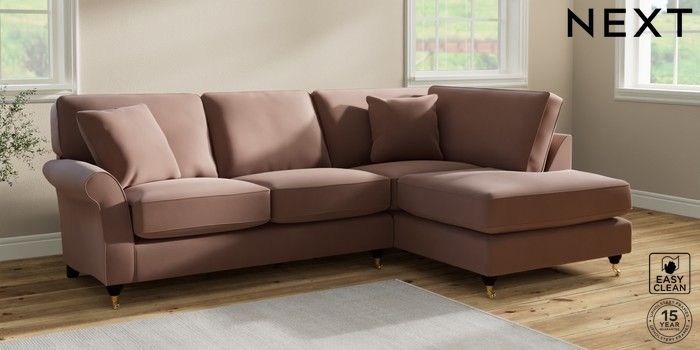 7.2.10 Ashford Relaxed Sit Medium Corner Chaise - Right Hand Plush Velvet Easy Clean Mid Natural Castor - Dark | Made Click here to use our website with more accessibility support, for example screen readers