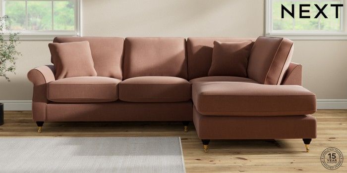 7.2.10 Ashford Relaxed Sit Medium Corner Chaise - Right Hand Relaxed Linen Look Light Rust Brown Castor - Dark | Made Click here to use our website with more accessibility support, for example screen readers