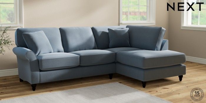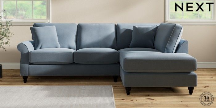 7.2.10 Ashford Relaxed Sit Medium Corner Chaise - Right Hand Relaxed Linen Look Mid Blue Low Turned - Dark | Made Click here to use our website with more accessibility support, for example screen readers