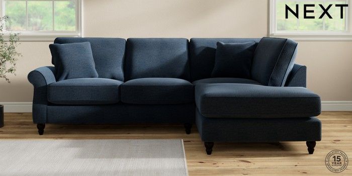 7.2.10 Ashford Relaxed Sit Medium Corner Chaise - Right Hand Ripple Chenille Dark Blue Low Turned - Dark | Made Click here to use our website with more accessibility support, for example screen readers