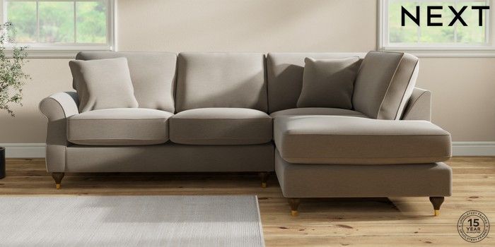 7.2.10 Ashford Relaxed Sit Medium Corner Chaise - Right Hand Ripple Chenille Light Natural Modern Turned Metal Cap - Mid | Made Click here to use our website with more accessibility support, for example screen readers