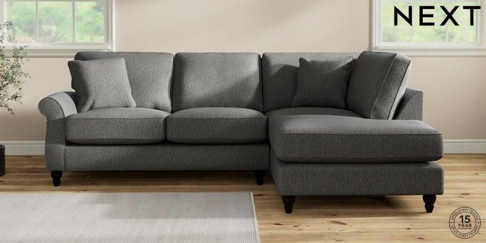 7.2.10 Ashford Relaxed Sit Medium Corner Chaise - Right Hand Tweedy Chenille Dark Grey Low Turned - Dark | Made Click here to use our website with more accessibility support, for example screen readers
