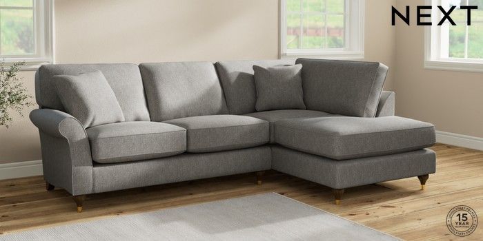 7.2.10 Ashford Relaxed Sit Medium Corner Chaise - Right Hand Tweedy Chenille Mid Grey Modern Turned Metal Cap - Mid | Made Click here to use our website with more accessibility support, for example screen readers