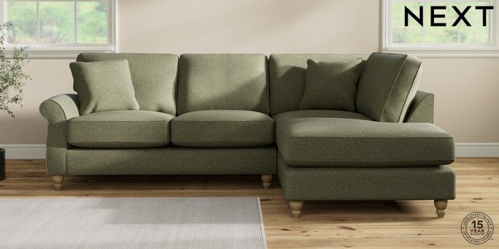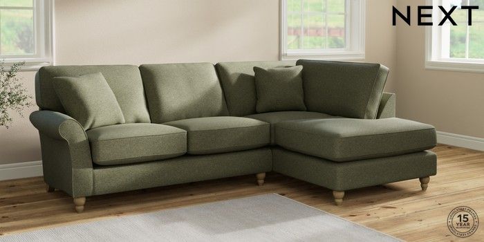 7.2.10 Ashford Relaxed Sit Medium Corner Chaise - Right Hand Tweedy Chenille Mid Moss Green Low Turned - Light | Made Click here to use our website with more accessibility support, for example screen readers