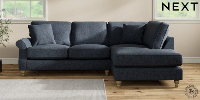7.2.10 Ashford Relaxed Sit Medium Corner Chaise - Right Hand Tweedy Chenille Navy Blue Low Turned - Light | Made Click here to use our website with more accessibility support, for example screen readers