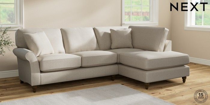 7.2.10 Ashford Relaxed Sit Medium Corner Chaise - Right Hand Tweedy Chenille Oyster Low Turned - Mid | Made Click here to use our website with more accessibility support, for example screen readers