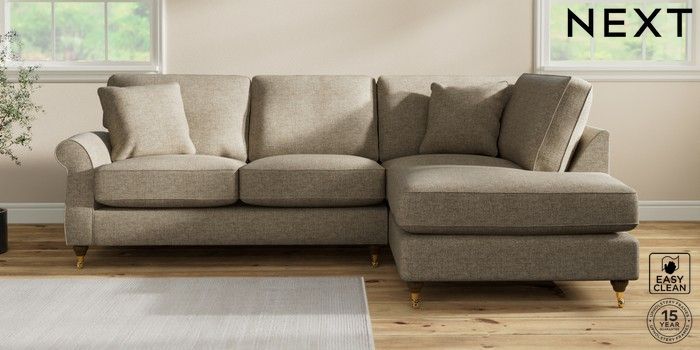 7.2.10 Ashford Relaxed Sit Medium Corner Chaise - Right Hand Woven Chenille Easy Clean Mid Natural Castor - Mid | Made Click here to use our website with more accessibility support, for example screen readers