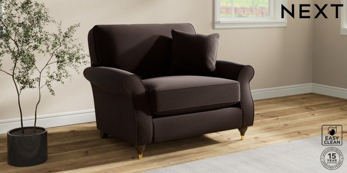 7.2.10 Ashford Relaxed Sit Snuggle Fine Chenille Easy Clean Chocolate Brown Modern Turned Metal Cap - Mid | Made Click here to use our website with more accessibility support, for example screen readers