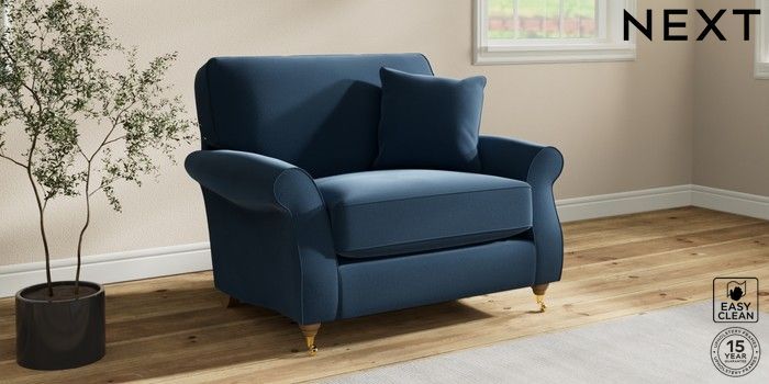 7.2.10 Ashford Relaxed Sit Snuggle Plush Velvet Easy Clean Airforce Blue Castor - Light | Made Click here to use our website with more accessibility support, for example screen readers