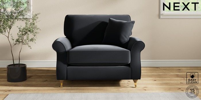 7.2.10 Ashford Relaxed Sit Snuggle Plush Velvet Easy Clean Charcoal Grey Castor - Light | Made Click here to use our website with more accessibility support, for example screen readers