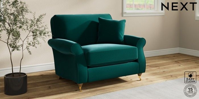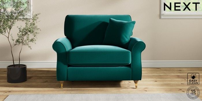 7.2.10 Ashford Relaxed Sit Snuggle Plush Velvet Easy Clean Juniper Green Castor - Light | Made Click here to use our website with more accessibility support, for example screen readers