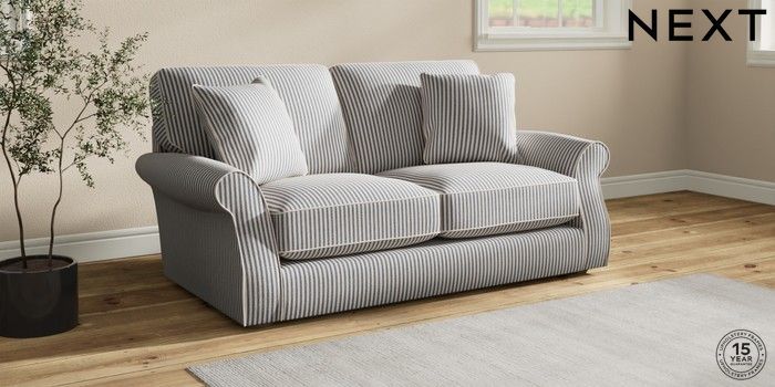 7.2.10 Ashford Relaxed Sit Sofa Bed Chenille Stripe Slate Blue Flat Bun - Light | Made Click here to use our website with more accessibility support, for example screen readers