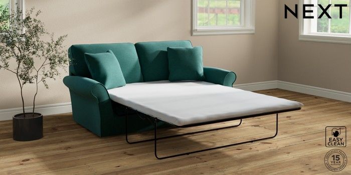 7.2.10 Ashford Relaxed Sit Sofa Bed Fine Chenille Easy Clean Dark Juniper Green Flat Bun - Light | Made Click here to use our website with more accessibility support, for example screen readers
