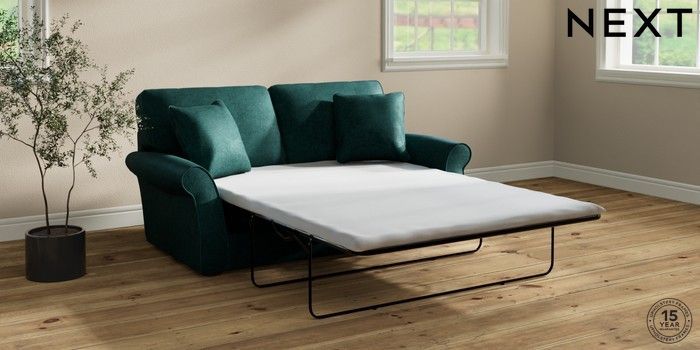 7.2.10 Ashford Relaxed Sit Sofa Bed Plush Chenille Dark Teal Green Flat Bun - Mid | Made Click here to use our website with more accessibility support, for example screen readers