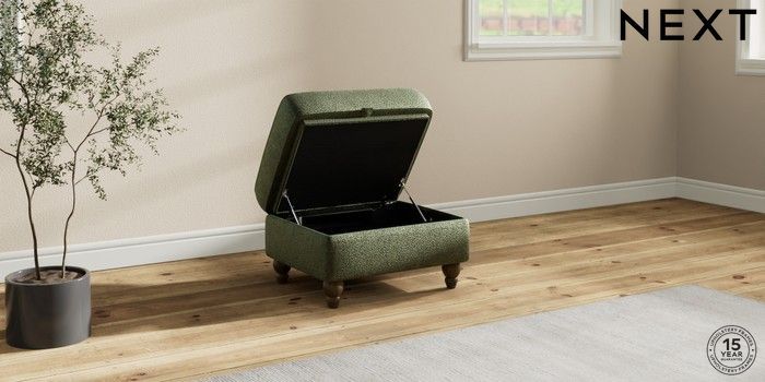 7.2.10 Ashford Relaxed Sit Storage Footstool Boucle Chenille Dark Moss Green Low Turned - Mid | Made Click here to use our website with more accessibility support, for example screen readers