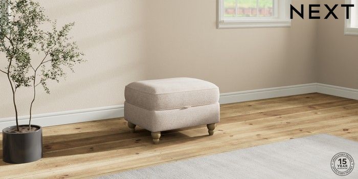 7.2.10 Ashford Relaxed Sit Storage Footstool Boucle Chenille Oyster Low Turned - Light | Made Click here to use our website with more accessibility support, for example screen readers