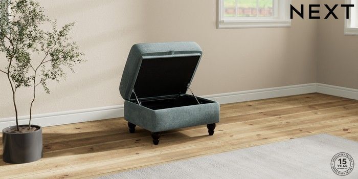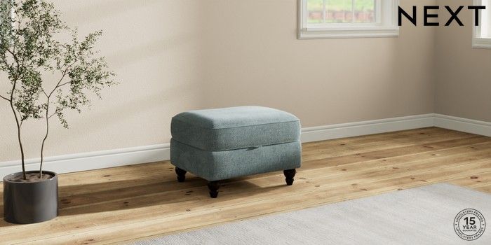 7.2.10 Ashford Relaxed Sit Storage Footstool Chunky Chenille Light Teal Green Low Turned - Dark | Made Click here to use our website with more accessibility support, for example screen readers