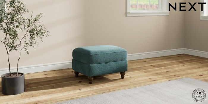 7.2.10 Ashford Relaxed Sit Storage Footstool Chunky Chenille Mid Teal Green Low Turned - Mid | Made Click here to use our website with more accessibility support, for example screen readers