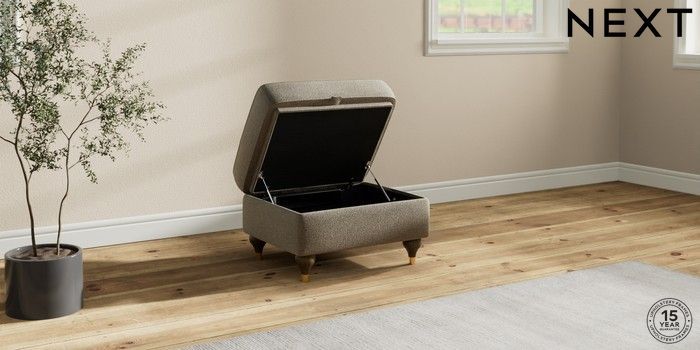 7.2.10 Ashford Relaxed Sit Storage Footstool Chunky Marl Light Olive Green Modern Turned Metal Cap - Mid | Made Click here to use our website with more accessibility support, for example screen readers
