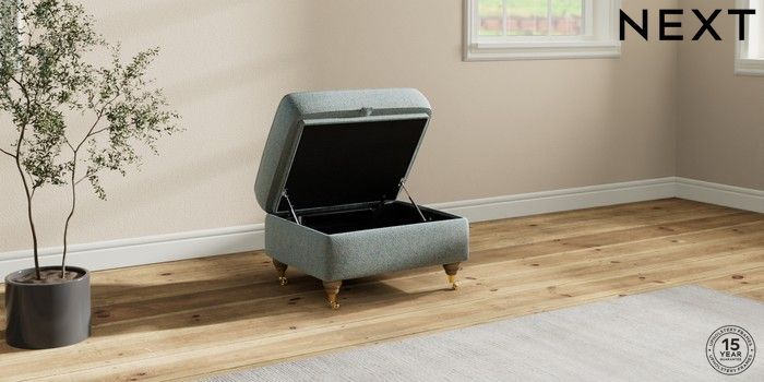 7.2.10 Ashford Relaxed Sit Storage Footstool Chunky Marl Mid Blue Castor - Light | Made Click here to use our website with more accessibility support, for example screen readers