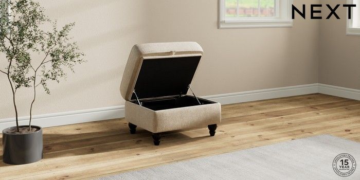 7.2.10 Ashford Relaxed Sit Storage Footstool Chunky Weave Cream Low Turned - Dark | Made Click here to use our website with more accessibility support, for example screen readers