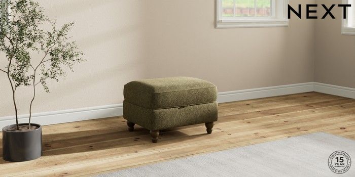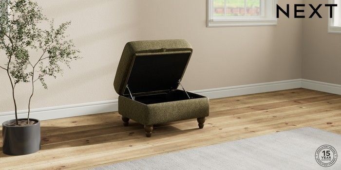 7.2.10 Ashford Relaxed Sit Storage Footstool Cotswold Chenille Dark Green Low Turned - Mid | Made Click here to use our website with more accessibility support, for example screen readers