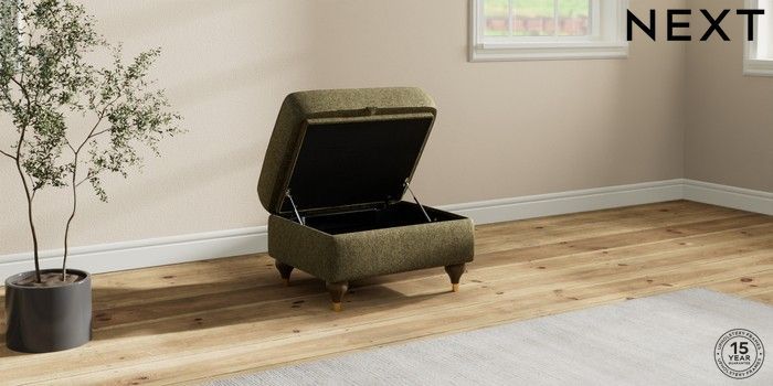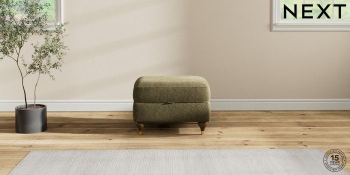 7.2.10 Ashford Relaxed Sit Storage Footstool Cotswold Chenille Dark Green Modern Turned Metal Cap - Mid | Made Click here to use our website with more accessibility support, for example screen readers