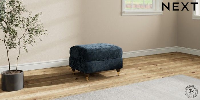 7.2.10 Ashford Relaxed Sit Storage Footstool Distressed Velour Midnight Blue Castor - Mid | Made Click here to use our website with more accessibility support, for example screen readers
