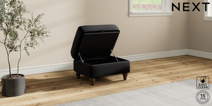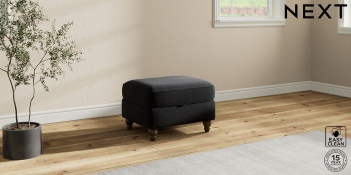 7.2.10 Ashford Relaxed Sit Storage Footstool Fine Chenille Easy Clean Black Low Turned - Mid | Made Click here to use our website with more accessibility support, for example screen readers