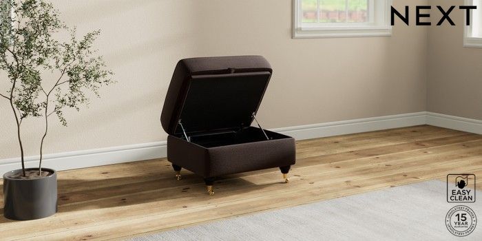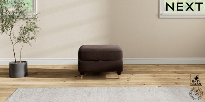 7.2.10 Ashford Relaxed Sit Storage Footstool Fine Chenille Easy Clean Chocolate Brown Castor - Dark | Made Click here to use our website with more accessibility support, for example screen readers