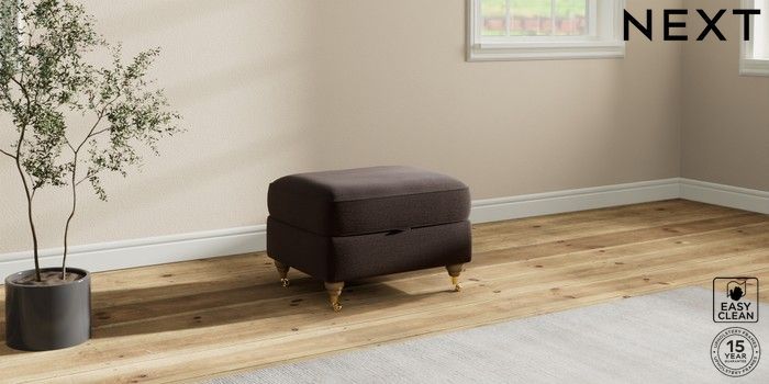 7.2.10 Ashford Relaxed Sit Storage Footstool Fine Chenille Easy Clean Chocolate Brown Castor - Light | Made Click here to use our website with more accessibility support, for example screen readers
