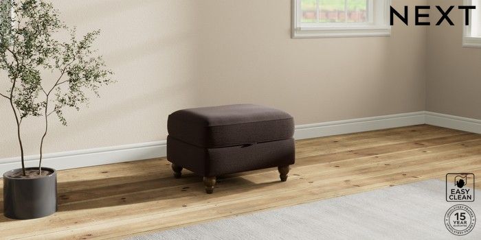 7.2.10 Ashford Relaxed Sit Storage Footstool Fine Chenille Easy Clean Chocolate Brown Low Turned - Mid | Made Click here to use our website with more accessibility support, for example screen readers