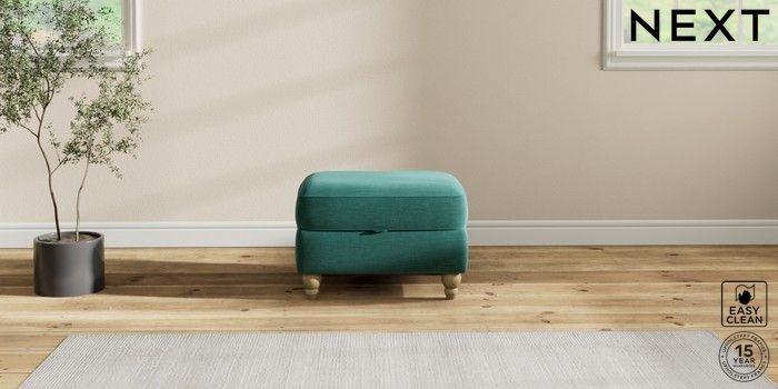7.2.10 Ashford Relaxed Sit Storage Footstool Fine Chenille Easy Clean Dark Juniper Green Low Turned - Light | Made Click here to use our website with more accessibility support, for example screen readers