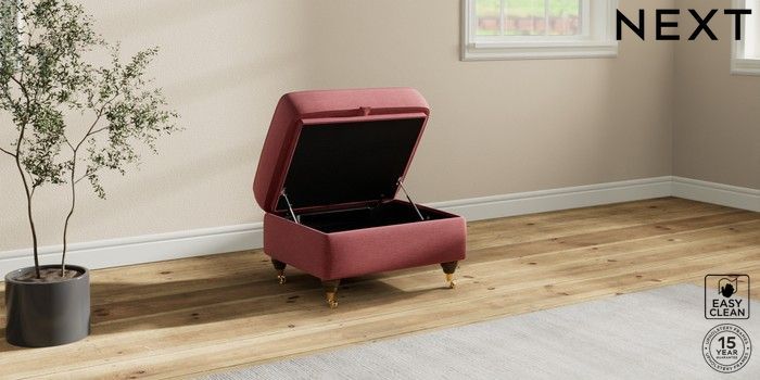 7.2.10 Ashford Relaxed Sit Storage Footstool Fine Chenille Easy Clean Mid Pink Castor - Mid | Made Click here to use our website with more accessibility support, for example screen readers