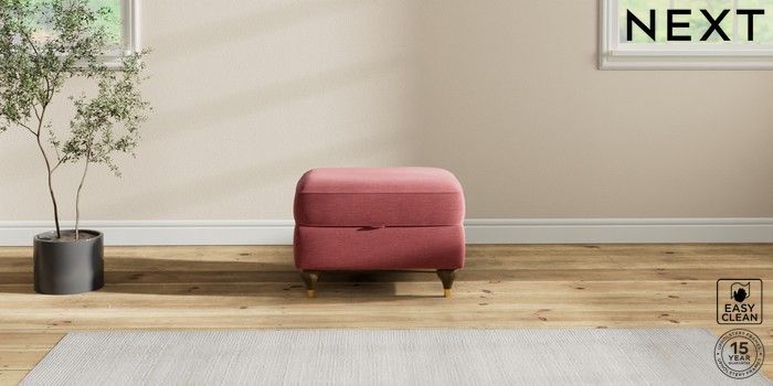 7.2.10 Ashford Relaxed Sit Storage Footstool Fine Chenille Easy Clean Mid Pink Modern Turned Metal Cap - Mid | Made Click here to use our website with more accessibility support, for example screen readers