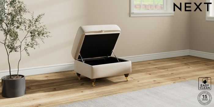 7.2.10 Ashford Relaxed Sit Storage Footstool Fine Chenille Easy Clean Oyster Castor - Mid | Made Click here to use our website with more accessibility support, for example screen readers