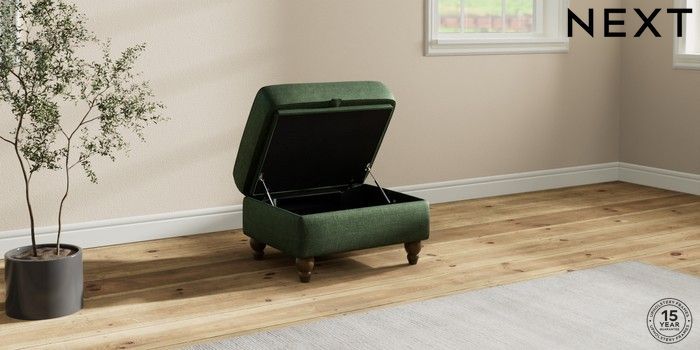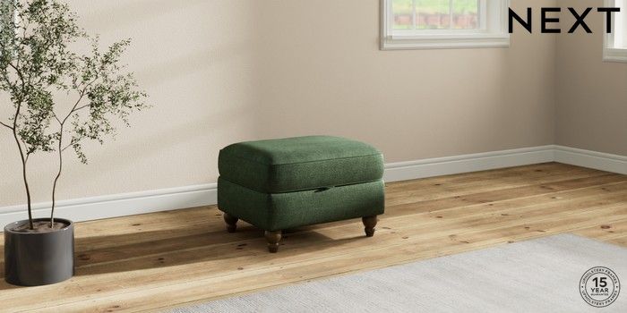 7.2.10 Ashford Relaxed Sit Storage Footstool Luxe Chenille Dark Green Low Turned - Mid | Made Click here to use our website with more accessibility support, for example screen readers