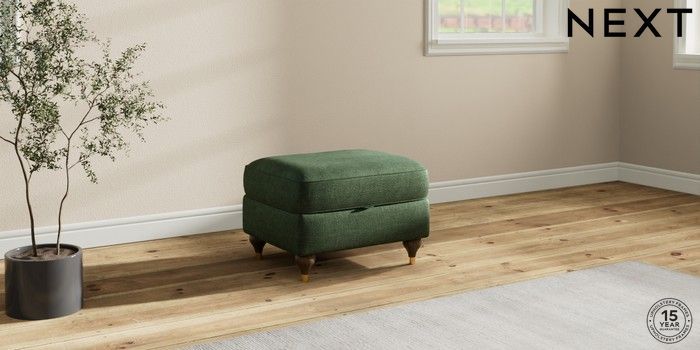 7.2.10 Ashford Relaxed Sit Storage Footstool Luxe Chenille Dark Green Modern Turned Metal Cap - Mid | Made Click here to use our website with more accessibility support, for example screen readers