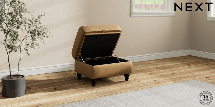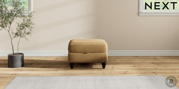 7.2.10 Ashford Relaxed Sit Storage Footstool Luxe Chenille Honey Yellow Low Turned - Dark | Made Click here to use our website with more accessibility support, for example screen readers