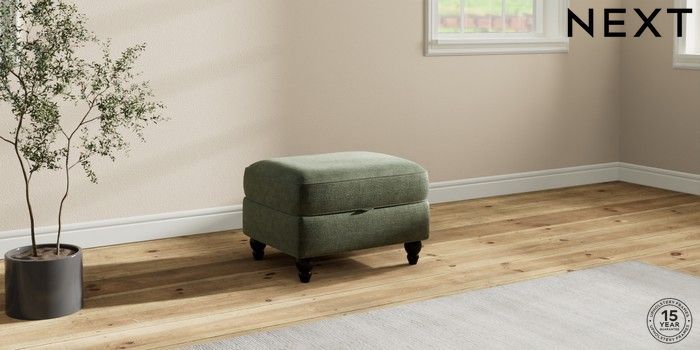 7.2.10 Ashford Relaxed Sit Storage Footstool Luxe Chenille Mid Green Low Turned - Dark | Made Click here to use our website with more accessibility support, for example screen readers