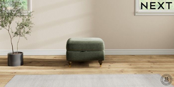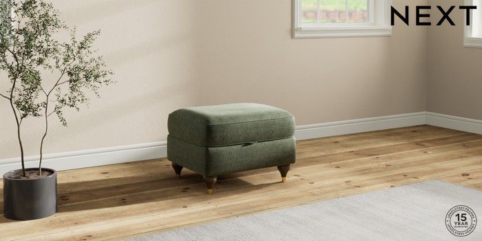 7.2.10 Ashford Relaxed Sit Storage Footstool Luxe Chenille Mid Green Modern Turned Metal Cap - Mid | Made Click here to use our website with more accessibility support, for example screen readers