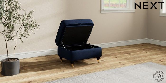 7.2.10 Ashford Relaxed Sit Storage Footstool Luxe Chenille Navy Blue Castor - Dark | Made Click here to use our website with more accessibility support, for example screen readers