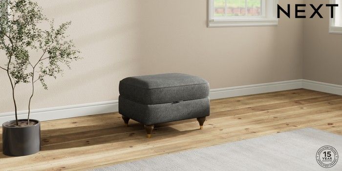 7.2.10 Ashford Relaxed Sit Storage Footstool Plush Chenille Dark Grey Modern Turned Metal Cap - Mid | Made Click here to use our website with more accessibility support, for example screen readers