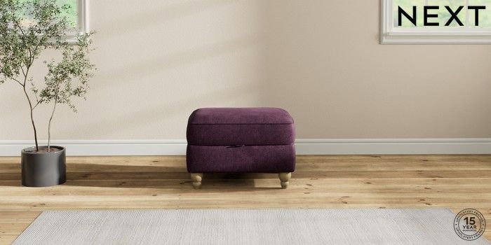 7.2.10 Ashford Relaxed Sit Storage Footstool Plush Chenille Dark Plum Purple Low Turned - Light | Made Click here to use our website with more accessibility support, for example screen readers